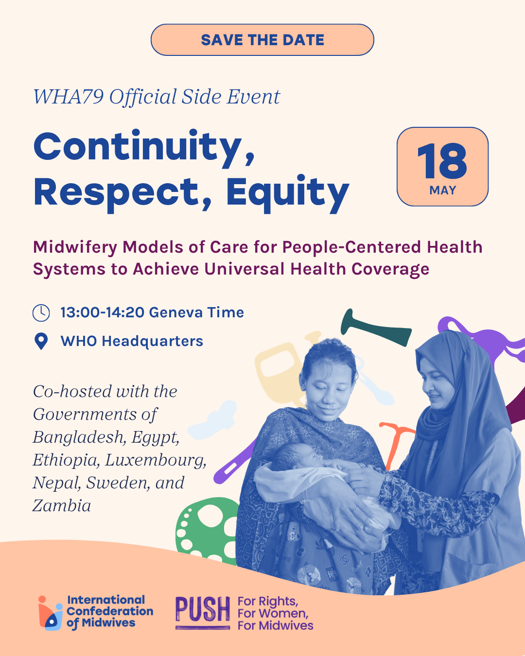 At this year’s 79th World Health Assembly (#WHA79), the International Confederation of Midwives (ICM), together with the Governments of Bangladesh, Egypt, Ethiopia, Nepal, Sweden, and Zambia are putting midwives on the agenda!