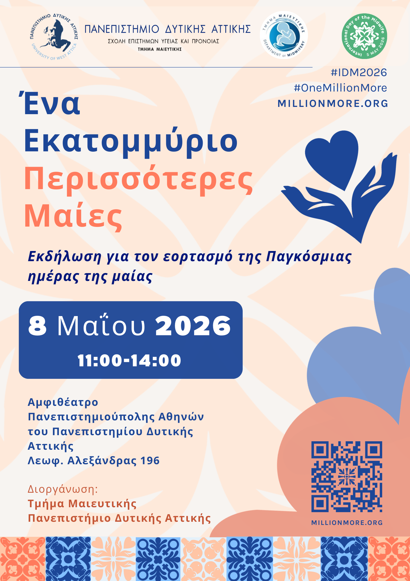 This event is organised by the Department of Midwifery of the University of West Attica to mark the International Day of the Midwife 2026, under the global theme “One Million More Midwives”, developed by the International Confederation of Midwives (ICM).