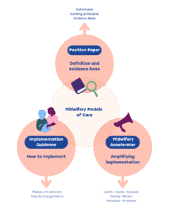 The Global Position Statement, Implementation Guide and Midwifery Accelerator build on each other and provide policymakers and advocates with tools and approaches on how to implement midwifery models of care. Their relationship is shown in the graphic below. Learn more about each document in this explainer presentation.