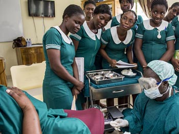 Through the project, life-like maternal and newborn mannequins were provided to universities and colleges, allowing students to practice and feel confident performing simulated obstetric emergency skills prior to entering a health facility and caring for patients.